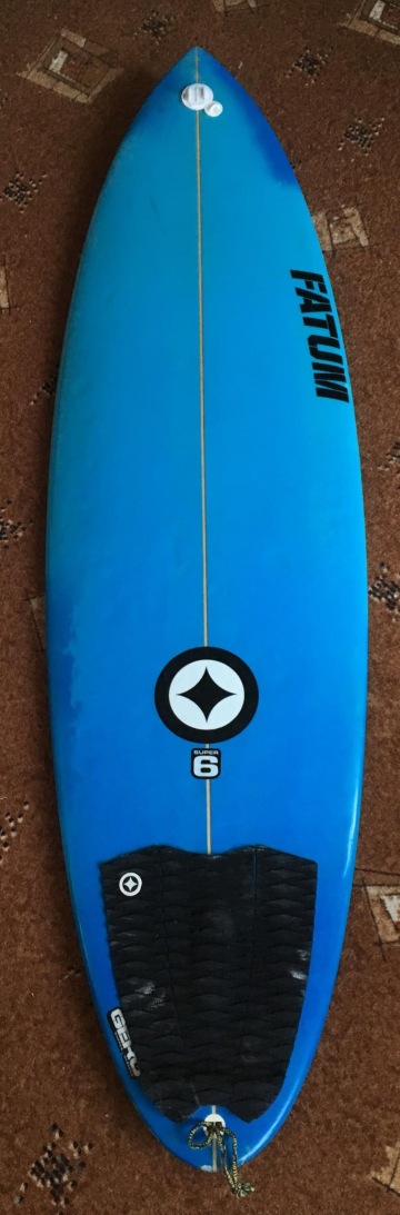 Prodám používaný surfboard Fatum Super Six 6'4" 34 L. + set FCS finek. Pár dingu, všechny opravené.…