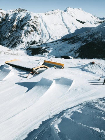 Snowpark Mottolino se rozprostírá na jednom z kopců nad městem Livigno, lež…