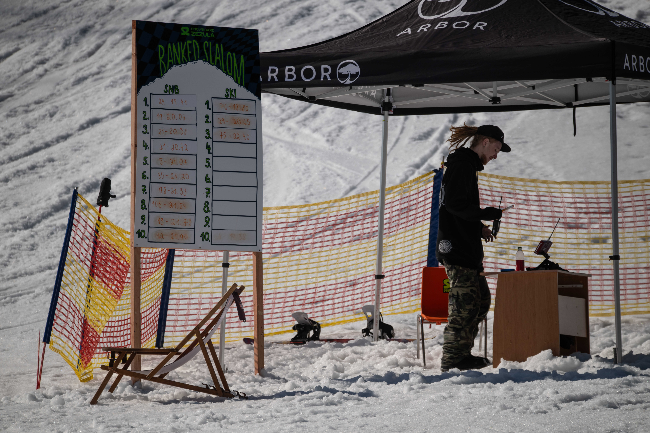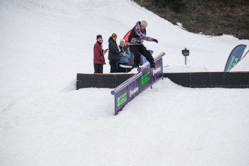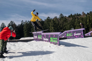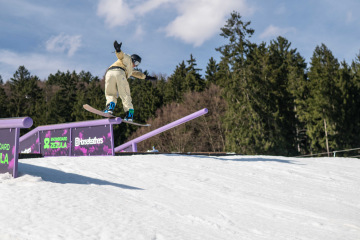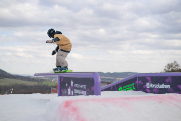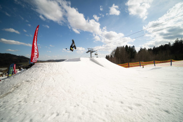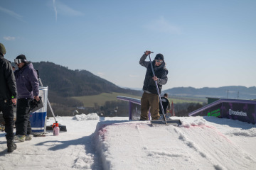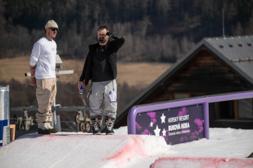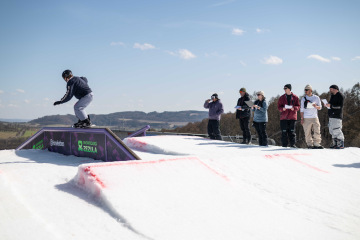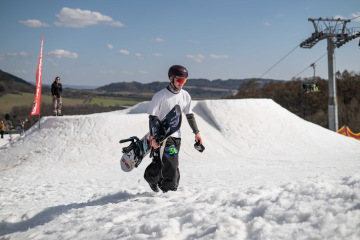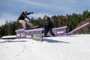 Spíš než samotné překážky nám dělal problém fakt, že celý set-up byl brutálně nasolený. Celý víkend totiž panovaly teploty přes 15 stupňů, a tak se kvůli zachování tvarů a rychlosti udržoval v tvrdosti. To pár jedinců bohužel okusilo na vlastní kůži. Holt snowboarding není pro slečinky a pár modřin k našemu sportu prostě patří – na tomhle set-upu každá chyba bolela dvojnásob.