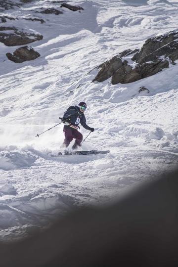Absolutní highlight ale byl pro mne poslední FWQ event Pitztal Wild Face, což je opět nebodové hodnoceni a stejně jako v Jižní Americe je to rychlostní závod ve freeridu. Nejede se ze sopky ale z Mittagskogelu až do údolí s velkým převýšením a technicky obtížnou tratí, přes boule, strmou stenu a úzké kuloáry, a to vše na čas. Mittagskogel je především fyzicky náročná výzva a nutí k tomu nepolevit až do samého konce. Závod se jede na kvalifikaci a finále, kde jsem druhým nejrychlejším časem získala 2.místo.