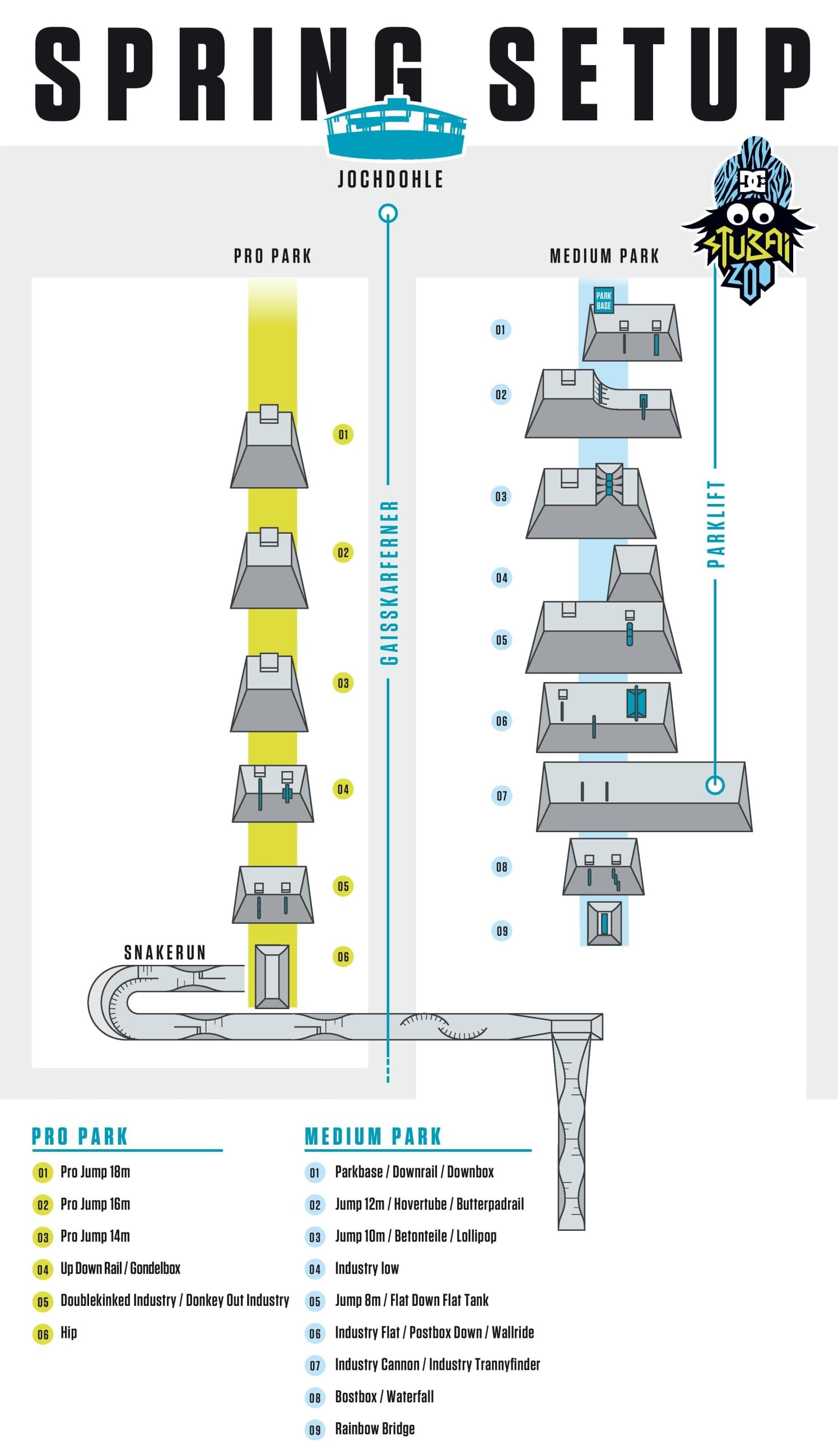 DC Stubai Zoo odstartuje jarní sezónu 7. dubna a park zůstane otevřený až do 12. května. Jezdit se bude na zbrusu novém set-upu s názvem "The Debate", na kterém se navrhováním podíleli Ethan Morgan, Lorenzo Peeters a Benny Urban ve spolupráci s firmou Schneestern.