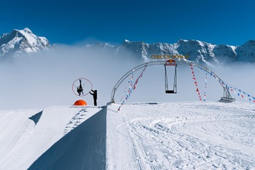 Fabian Bösch si ve spolupráci s Red Bullem nechal v Schilthornu postavit svoje vlastí parkový "šapitó"...
