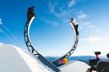 Když nažhaví svoje mozkový závity švédskej hubeňour Jesper Tjäder, tak z toho povětšinou vyleze pěkná čunačinka. Navíc když se do toho ještě namotá jeho sponzor Red Bull, tak máme všichni o zábavu postaráno. Jejich nejnovější kolaborace nese název open loop rail a stačí se číhnou na jednu fotku a nápad pochopí i člověk s inteligencí bloumajícího prvoka. Osm let poté, co Jesper jako první pokořil loop rail ve filmu "Supervention 2" od Field Productions (video zde), si celou věc nechal malinko upgrejdovat. V domácím prostředí v Åre si tak nechal postavit smyčku, kde ale uprostřed najdeme třímetrovou mezeru. Na první dobrou to rozhodně nevypadá jako překážka, na kterou se pohrnou davy. Proč by taky... Mě by na to nedostali ani heverem. Samozřejmě že je vůbec první, kdo se o něco takovýho pokusil. Severskej sympaťák si tak připsal další lyžařskej primát. Asi je všem jasný, že se mu tu potvoru nakonec podaří zdolat. Jimak by o tom psát postrádalo smyl. V konečným součtu mu na to stačilo 42 pokusů a bylo vymálováno a mohl slavit. Více už pozradí video a taky pár fotek...