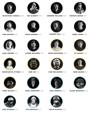Mezi chlápáky je největší ztrátou určitě loňský vítěz italskej čahoun Markus Eder. Ten si zkrátka pro letošek bere závodní volno, a tak dává šanci pozvednout pohár pro šampióna konkurenci. Jméno, na které tak bude spočínat zrak asi nejvíce, bude sám Ski Boss Tanner Hall, kterej bude určitě chtít navázat na loňskou premiérovou zimu, která sice nebyla zlá, ale určitě šlo z toho vytřískat více. Šest jezdců pak startuje díky divoké kartě a další půltucet nováčku poprví zažije slastný pocit patřit mezi freeridovou elitu. Mezi nimi najdeme sestavu Isaac Freeland (USA), Carl Renvall (SUI), Blake Marshall (NZL), Tao Kreibich (AUT), a americká bratrská dvojce Jack a Kevin Nicholsovi.