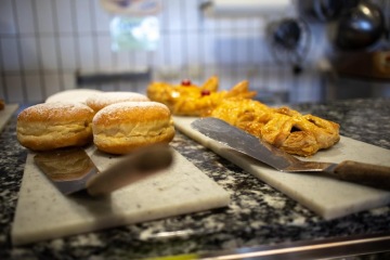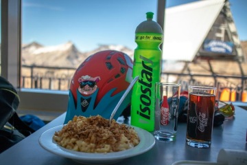 Vzhledem ke konci léta a zatím nedostatečnému padání přírodního sněhu a ještě k tomu dlouhodobému teplu, byla sjezdovka dopoledne na fakt ostré hrany… Místy jsem klouzal bokem 20m bez možnosti zastavení. Naštěstí jsme odešli opět na dlabanec do místí dobré a levné restaurace. Ochutnávku místních sladkostí máte níže :-P Spetzle „malé“ opět nezklamaly, takže jsem s zase jako obvykle zde přejedl…