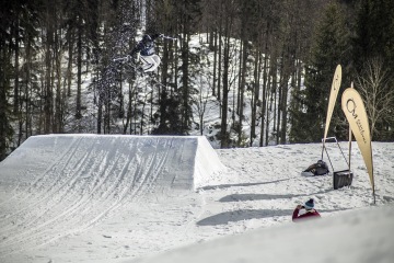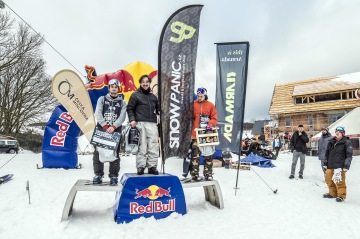 Rada (nej)starších pak zasedla k finálovému stolu ve zkušeném složení. Mezi nejlepší chlapáky se opět prodraly zběhlá jména jako Honza Ježek, Radek Palkoska, Vojta Ševeček a Honza Ferbr. V podstatě nás čekalo repete z Deštného. Sladkou pomstu určitě plánoval Jéža, jenže si jaksi zapomněl přibalit produkty cukrovaru. Den mu tak po nepopulárním čtvrtém místě a bodíku a půl ztráty na placku lehce zhořkl. To Vojta měl při volbě jízdy šťastnější ruku a hlavně i nohy. Kombíčkem switch pravá 720 japan a switch cork 540 si zopakoval svoje minulé bronzové potěšení. Velkou odvetu si pak naplánoval Honza Ferbr, kterej Ráďovi tentokrát nic nedaroval. Půlbodovej rozdíl by se sice těžko hledal i mikroskopem s nejkvalitnější optickou sestavou, leč rozhodčí ho odhalili. Ani nášup fs switch up precl 270 ven, 450 z railu, pravej cork 720 a cork 900 reverse mute nenadělil Radkovi zlatou a musel se tentokrát před Ferbříkem sklonit. Gratulace a díky všem, co dorazili.