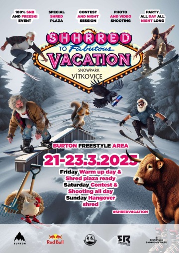 Závěrečný snb/freeski event sezóny v Burton Freestyle Area Vítkovice se blíží!!! Tradiční Shred Vacation proběhne o víkendu 21. až 23. března2025 a máte se určitě na co těšit. Hlavní program je připraven na sobotu 22.3.2025, nýbrž z letité praxe víme, že dělat contesty a navazující party v pátek znamená sobota mínus a v neděli už všichni hledají s kocovinou střípky toho, co se dělo v sobotu.