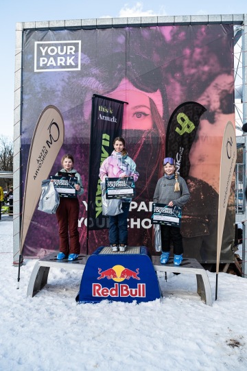 Královská pánská garnitura pak nabízela několik léty prověřených jmen, která si možná ještě pamatují dobu ,kdy se místo s hůlkami jezdilo s pazourkem. Je určitě fajn se sejít se starejma kmetama a lehce si zase pohonit pánská ega. Znalost místního terénu pro tentokrát nepomohla lokálovi Honzovi Ježkovi. Pátej flek. Vojta Břeský se sice narychlo stihnul vrátit z polskýho Evropák, jenže svíčku jeho nadějí sfouknul nepovedený dub cork. Bronz si tak elegantně pohlídal Vojta Ševeček. K-fed, bs 450 a switch bio 900 jsou zbraně, kterými k útoku zavelel Honza Ferbr a až na jednoho protivníka, dokázal všechny soupeře pokosit. S nejlepší formou se totiž potkal fotr Radek Palkoska. Rodinná podpora mu dodala energie víc než jaderný uran U235 a jeho synek tak mohl sledovat jeho zlatej run dotaženej perfektním devítikelm s reverse mutem. Gratulace a díky všem, co dorazili.
