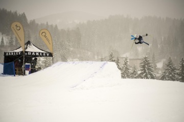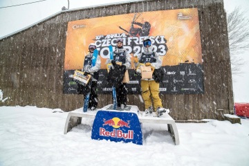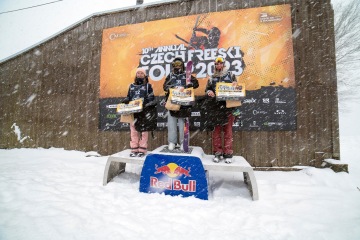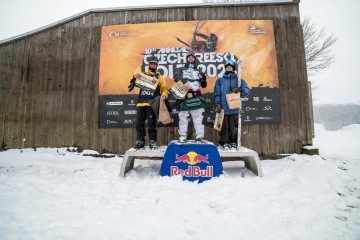 Zakaboněnou neděli mohly prosvitnout špetkou dobrý náladay výkony na big airu. Ten vyrostl v místní pro lajně a nezapomnělo se ani na menší odraz pro méně zdatné freeskiery. Bohužel taky malinko zchudla startovka, pod čímž se určitě podepsalo nerudné počasí. Kopnu tak nakonec brousilo čtrnáct chlapáků a trojlístek žen. Protože chceme bejt světový, tak jsme formát zkopírovali ze Světovýho poháru. Kvalda tedy na dva skoky a povedenější se bral v potaz. Finálová osmička pak rotovala hned třikrát a rozhodčím se musela zavděčit dvěma triky provedenými na opačný strany. Kdo sleduje, ta ví. Dívčí trio se s tím zbytečně necrcalo a finální klasifikace se vyrobila rovnou z kvaldy. Druhou víkendovou výhru si tak mohla odfajfkovat Agáta Christophová, která jako jediná nabídla rotaci o 540 stupňů. Na pódium jí pak doprovodila zkušená dvojka Lucka Pečová a Gábina Janoušková.