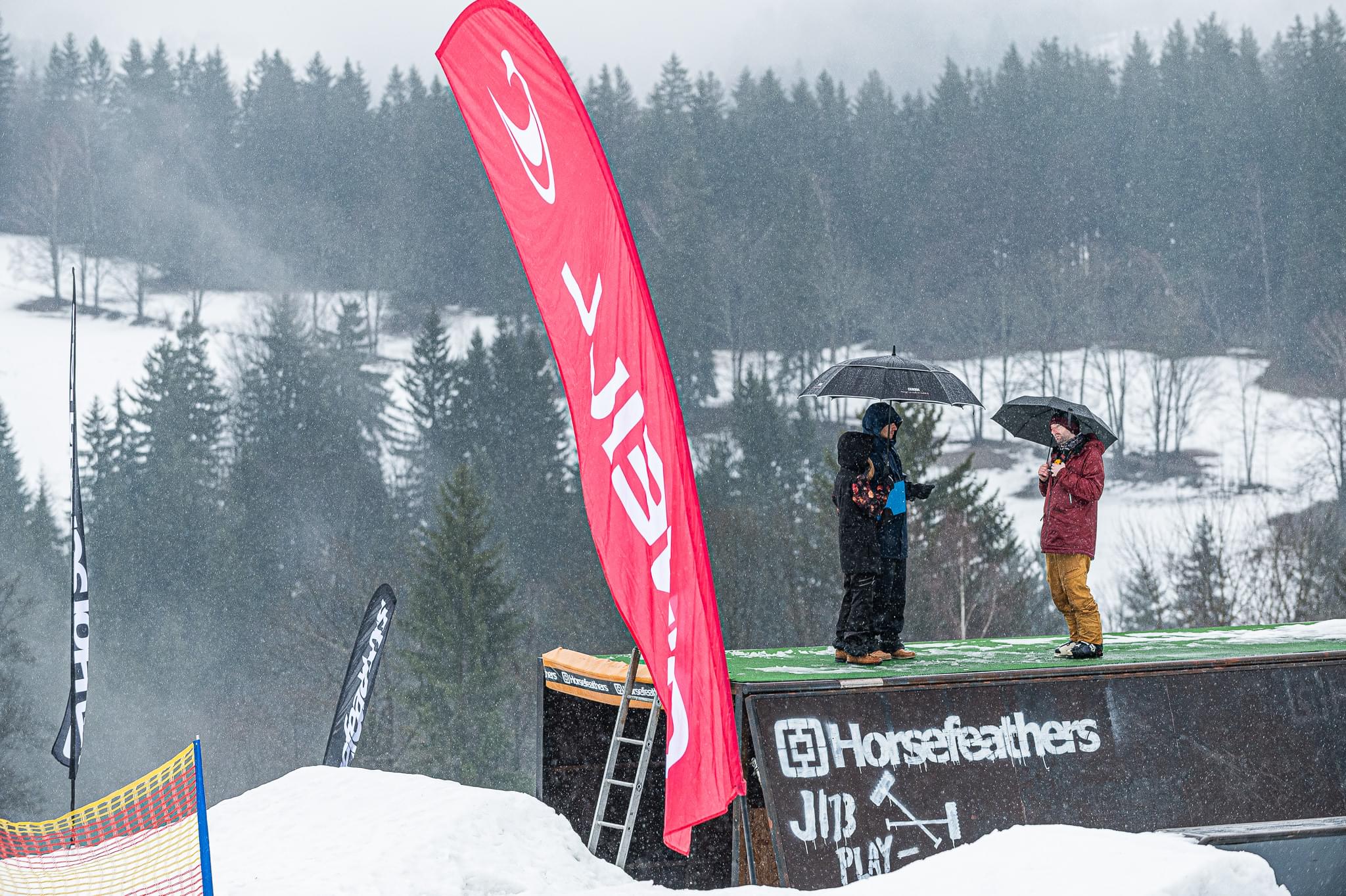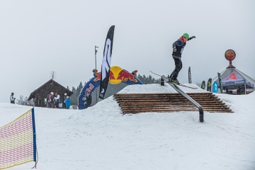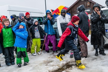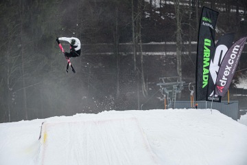 Vlajková loď poháru tedy kategorie mužů nezačala pro jednu dvojici Janů vcelku slavně. Už v tréningu totiž svoje naděje utopil Honza Ježek a jeho jmenovec Honza Ferbr. Rozbouřený kolena zlobily, a tak nebylo radno pokoušet osud. Situace tak využil Dan Hanka, kterej si zase jednou vyrazil zazávodit a za rightside 540 cuban a switch cork 720 blunt si odvezl zasloužnej první flek. Znalost místních vod a zejména překážek pak přetavil ve stříbro Tom Kroczek, kterej za sebou nechal i zkušenějšího mořskýho vlka Robina Holuba. Na závěr naší lyžařský plavby nezbývá než všem poděkovat za odvahu. Vůbec bych se nedivil, kdybychom ještě teď všichni sušili svoje durch promočený věci a tělesné údy. Doufejme, že se napřesrok budeme řídit jiným heslem než poetickým „Chč*e a chč*e“ od dědy Komárka. Jinak totiž lyže vyměníme za kánoe, šlapadla a pramice...