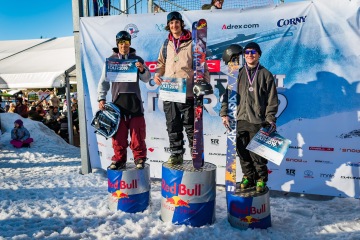 Královská pánská kategorie se ve finále, jak už jsme se prokecli, tedy musela obejít bez Vojty Břeskýho. Kvalifikačním sítem pak neprolezla ani třeba lokální dvojka Honza Ježek a Patrik Kříž nebo Ondra Beneš, kterej plnil funkci nejstaršího kmeta ve startovní listině. Obě finálový kola zrovna dvakrát nesedly Radkovi Palkoskovi a Honzovi Ferbrovi. Nakonec pouze nicotnej půlbodík rozhodl, že Honzik si po výhře z Vítek tentokrát odveze třetí flek. Pepé Kalenský chtěl ukázat, že ještě nepatří do starýho železa, a to se mu povedlo náramně. Jeho switch 720 do switch 900 mute mu vynesly zaslouženou druhou pozici. Chuť si do Orlickejch určitě přijel napravit Šimon Bartík. Přece jenom na Mistroství světa v Park City to bylo to pravý ořechový. Tady rightside 900 podpořil jediným doublem závodu (switch dub cork 1080) a mohl bouchnout flašku šáňa nebo jinýho nápoje, kterej byl po ruce. Bez diskuzí jasná výhra….