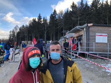Po pravdě ani ty tři hodiny jsme to nakonec nevydrželi. Už jsme zkrátka a dobře zhejčkaný. Tady snad ani nešlo o nějaký převratný zážitek, kterej jednou budu hrdě vyprávět vnoučatům. Situace je jaká je. Covid na pěst, počasí by si taky malou facku zasloužilo. A provozovatelé lyžařských areálů melou z posledního. Teď jim to zas akorát vláda zavřela a můžou se dát max na modlení a to jim nikdo nezávidí. A jinak? Jasný, bylo to ledovatý, že by tam mohli pittsburští Tučňáci nastoupit proti Letcům z Filadelfie. Jasný, byla tam hlava na hlavě, páč sjezdovka nebyla komplet vysněžená. Jestli ale někdo čekal manšestr, širý pláně a pečený holuby přímo do huby, tak byl velkej snílek. Tohle bylo zkrátka šitý horkou jehlou, krajní řešení, nouzovka pro nadšence… Každopádně dát za tohle za celej den litra (kdekoliv) je taky mimo mísu… SKOL a přístí rok co nejdřiv na svahu v plný fazón! Jinak nás fakt asi definitvně migne...