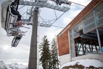 AreitXpress je nová kabinková lanovka, kam se komfortně vejde 8 lidí. Příjemným překvapením byly vyhřívané sedačky, což u kabinových lanovek rozhodně není standart. Touhle luxusní kabinkou jsme se dostali do 1 400m n.m., kde jsme přesedli do druhé, již standartní kabinky Areitbahn. Ta nás dovezla až téměř na vrchol celého střediska do 1 900m n.m.