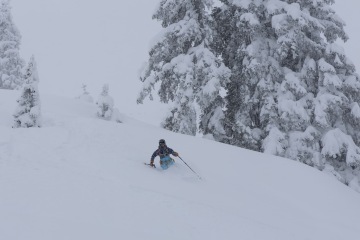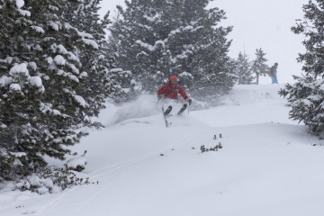 Další den nás opět přivítal mlhou a sníh, který měl napadnout přes noc padá až teď. No nic, stejnak jdeme dále prozkoumávat středisko. Přece ten prašan nenecháme ležet ladem. Tentokrát se lanovkami přesouváme do Stubenu. Místy ovšem opravdu nevidíme kam jedeme, a tak hodně oceňujeme, že jsou místní freeride trasy označené i v aplikaci mapy.cz. V tomhle počasí si nejvíce užíváme lesíky pod lanovkou Albona 1. Jednotlivé jízdy jsou jako kinder vajíčko. V každé totiž objevíme další překvapení v podobě neodpaněnéno prašanu. Tu se skokem, tu se slalomem mezi smrčky nebo technické lajny. No prostě paráda. Po cestě k autu ještě kecáme s místními a shodujeme se, že to je spíš jak na začátku sezóny než na jejím konci.
