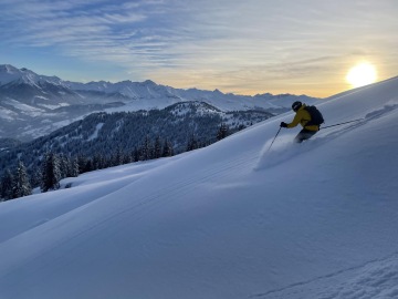 Ale my jsme Snowpigs. My chceme rypáky rýt prašan! Jak je to s freeridem? Je to království prašanu? Je to ráj? No, je. Výše zmíněné má totiž některé skvělé důsledky. Takhle velké středisko s menším množstvím vleků dává ve volném terénu tolik prostoru, že i po prašanovém big day stále zůstává spousta čistých lajn na den další. Menší sklony svahů nemají takové lavinové tendence i po velké nadílce a hlavně terén je velmi přehledný. To bych zde ještě zdůraznil. Opravdu je zde mimořádně krásně vidět, kam co vede. Terénních pastí je minimum, a i pro neznalce není problém si najít krásné trasy, které končí opět na některé návratové sjezdovce nebo cestě, které křižují každou nižší pasáž a bez velké bolesti vás dovedou zpět k nějaké lanovce. Celkově je to takový ten krásný styl "nakoukám to z lanovky a bez obav to tam mohu poslat".