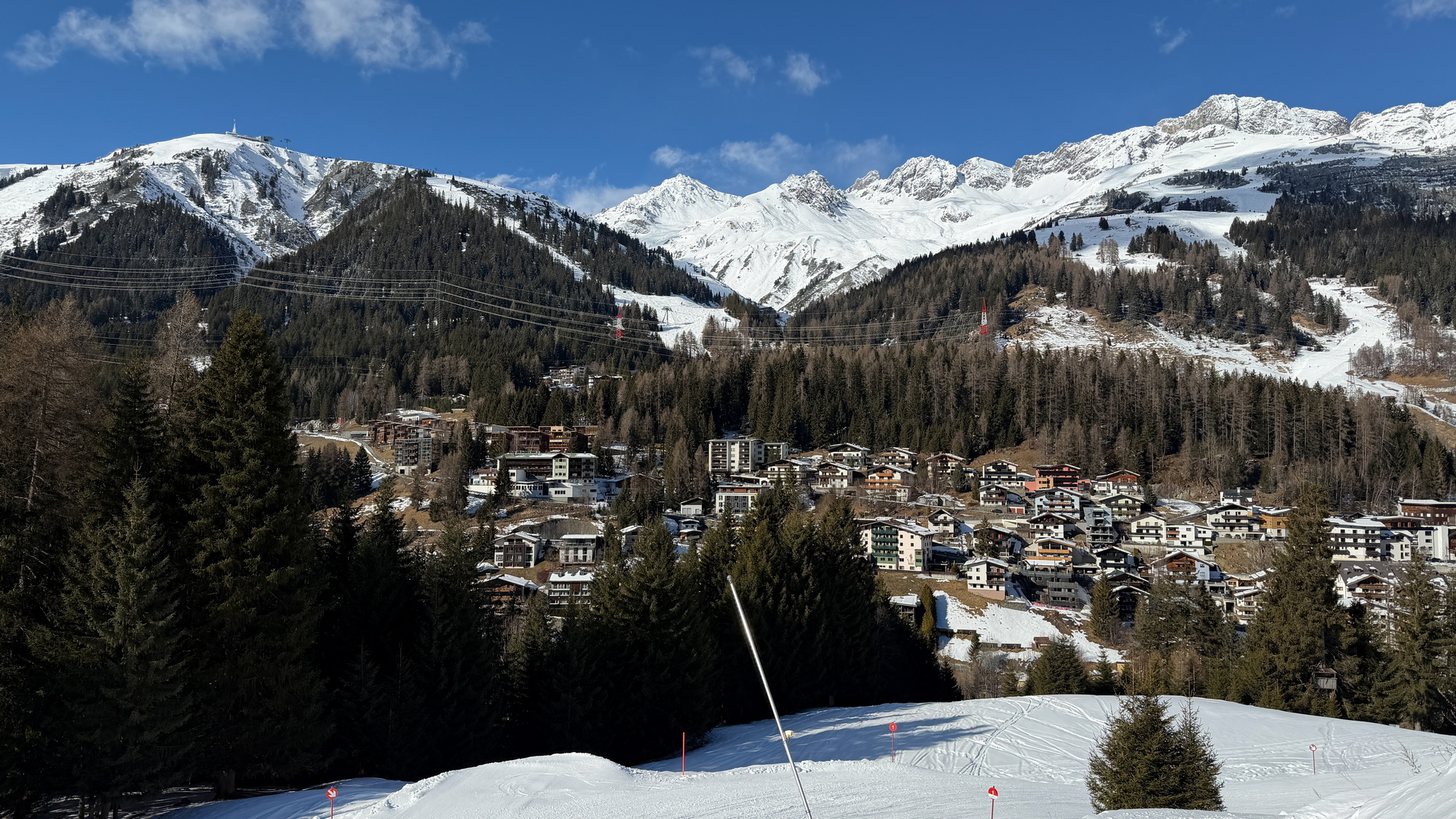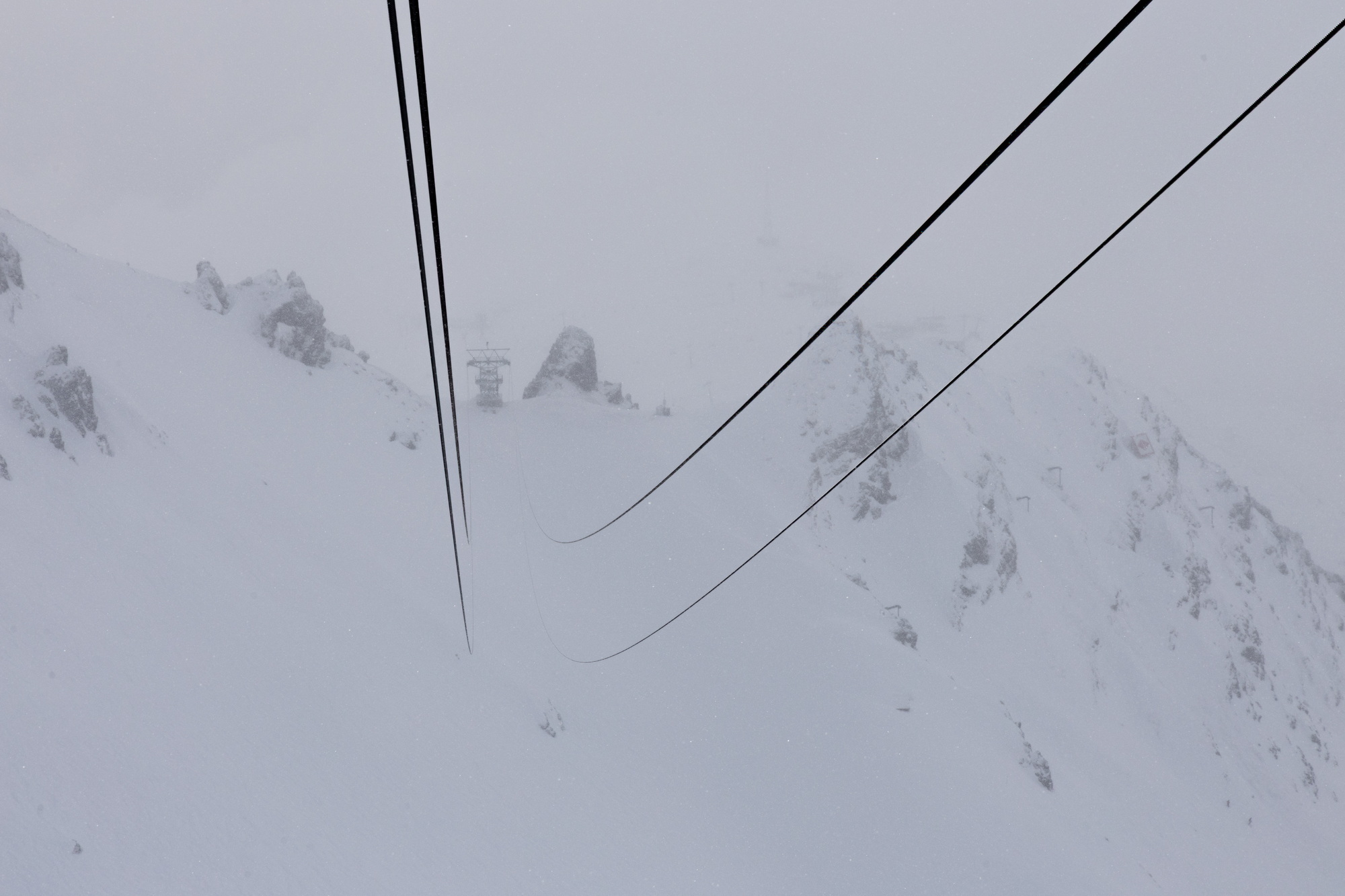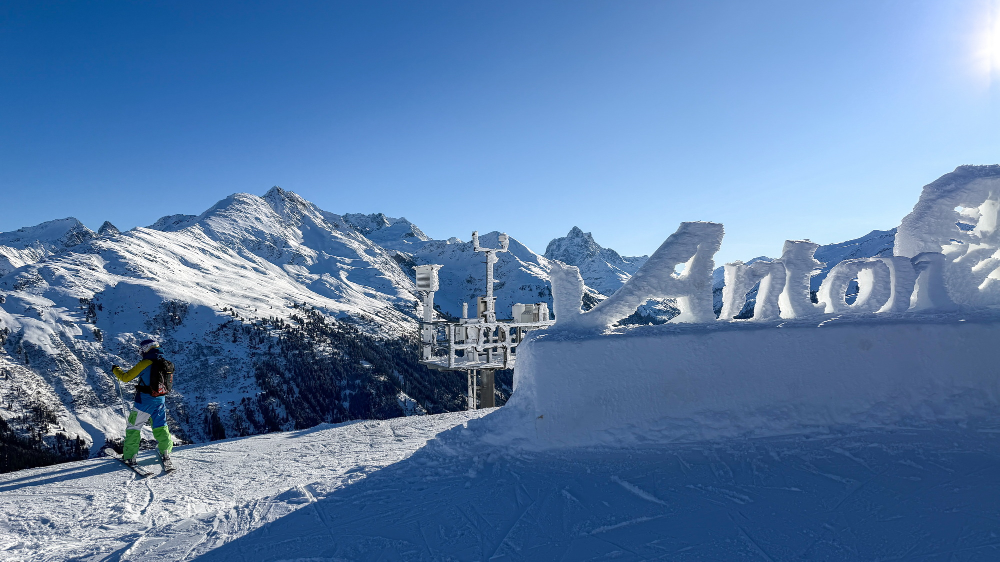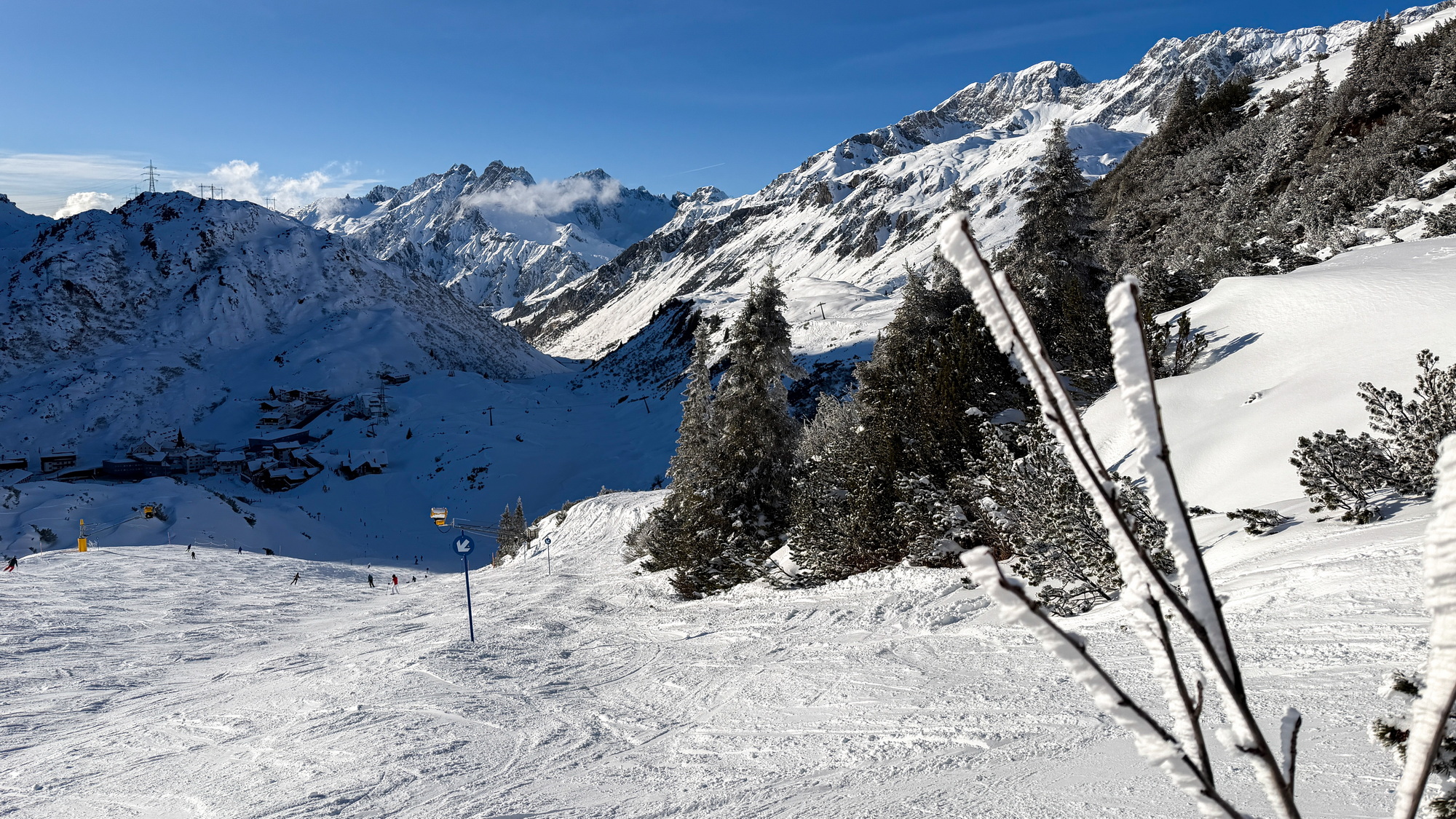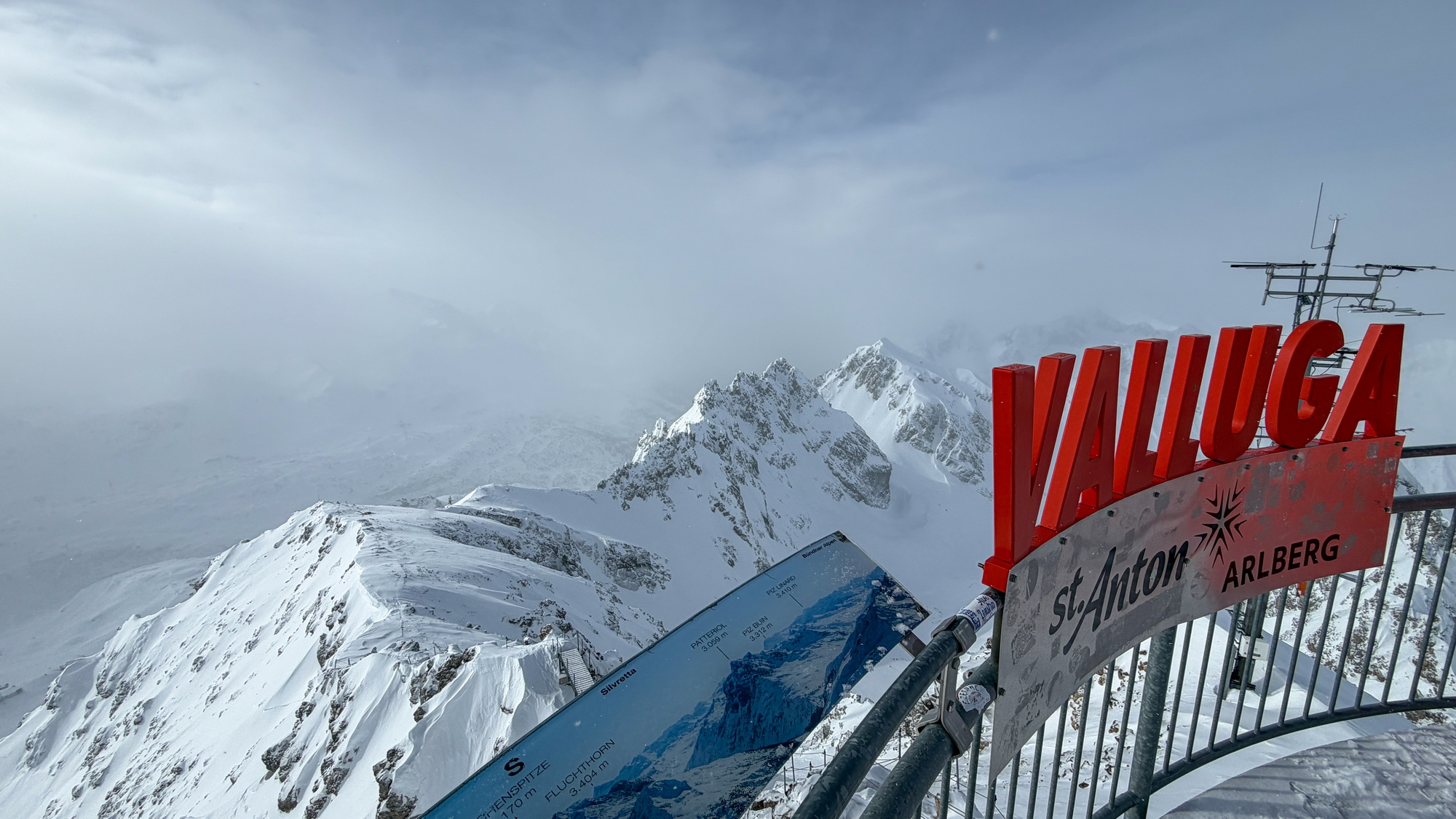 Vyrážíme tedy na Kapallkopf a rovnou zkoušíme Mattun Skiroute. Po několika obloucích zjišťujeme, že tahle orientace svahu nebude ta ideální. Svah je poměrně vyfoukaný, místy dost velká krusta, a tak se z naší první jízdy klube docela slušné utrpení a poučení, že jihozápadní svahy jezdit nemáme. Vzhledem k tomu, že počasí se spíše kazí, kontrolujeme webkamery a zjišťujeme, že jediné zbytky slunečních paprsků jsou až nahoře na Valluze. Přesouváme se tedy na Vallugabahn I a vyjíždíme nad mraky. V mezistanici necháváme lyže a jedeme se ještě pokochat sluníčkem na Vallugabahn II. Z vrcholu Vallugy je povoleno sjíždět pouze s horským vůdcem a rozhodně ne v této sněhové podmínce. Alespoň se tedy fotíme a posíláme domů trochu „závisti“. Opravdu je to jediné místo, kde svítí sluníčko, takže toho využíváme a dáváme si několik jízd na Vallugaliftu, malé ale za to poměrně prudké kotvě. Konečně trochu nerozježděného prašanu, kterým člověk za této situace absolutně nepohrdne.