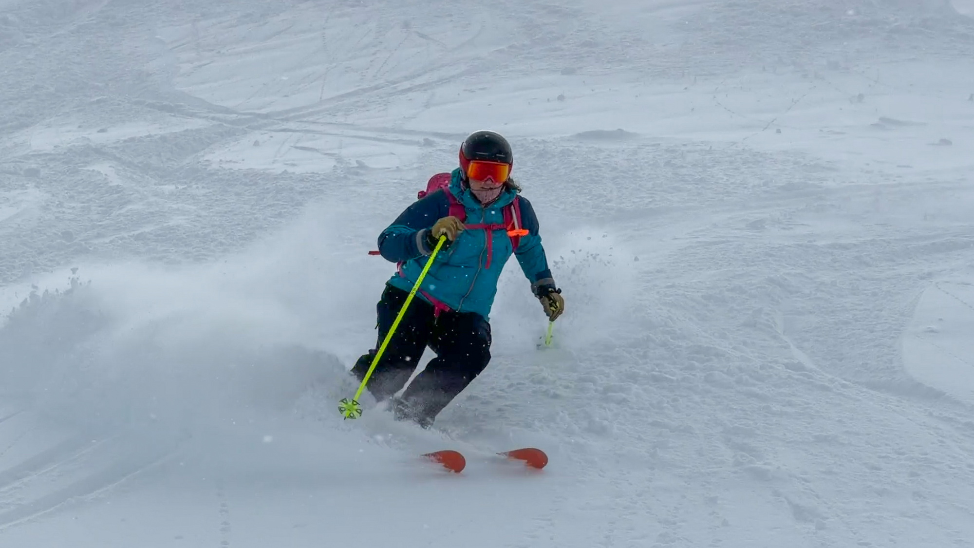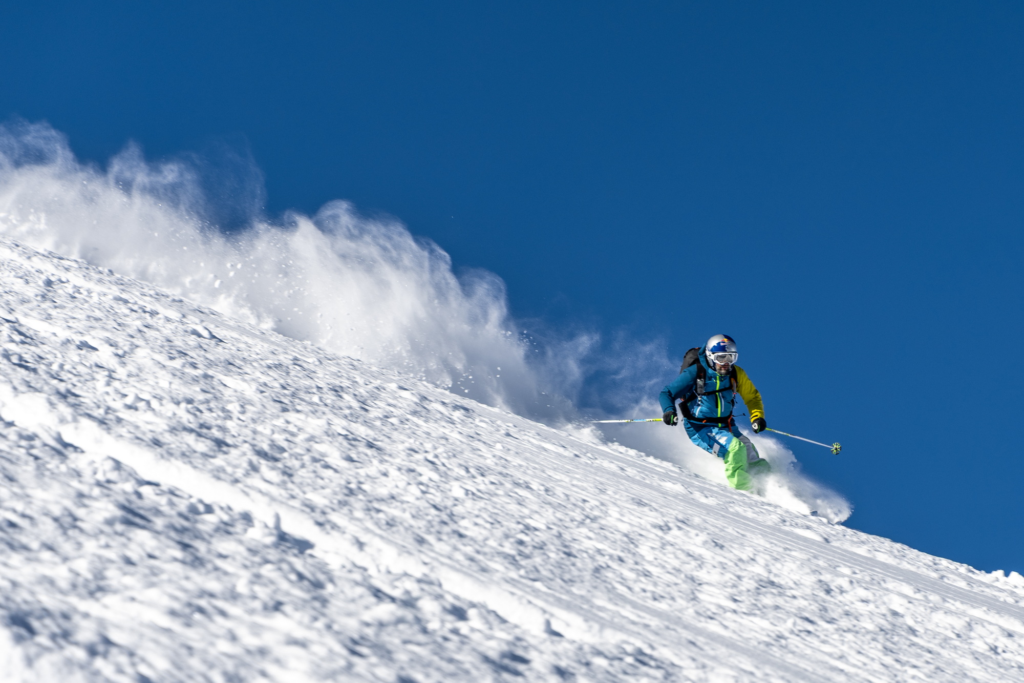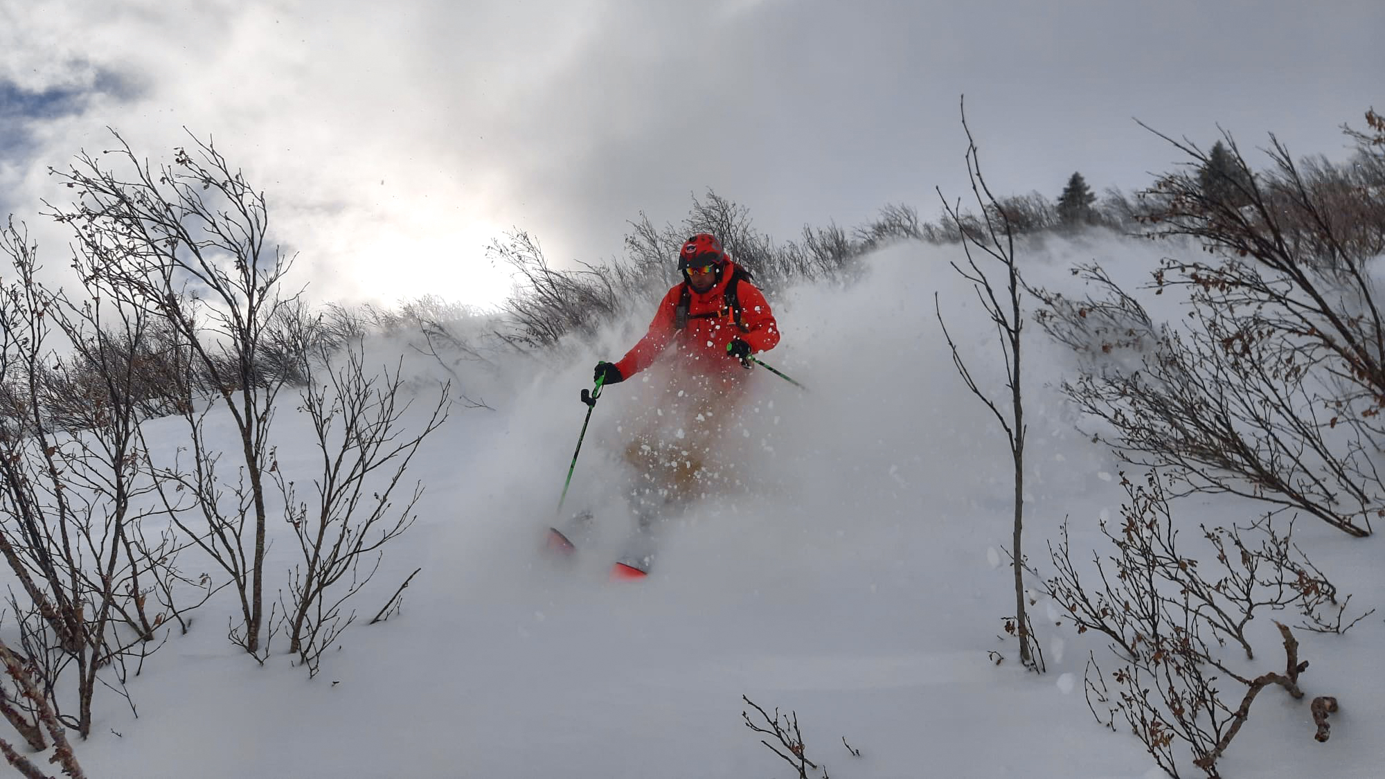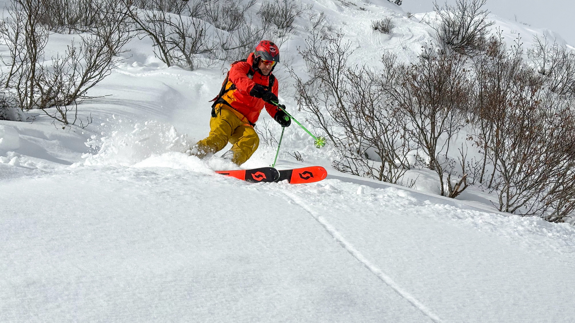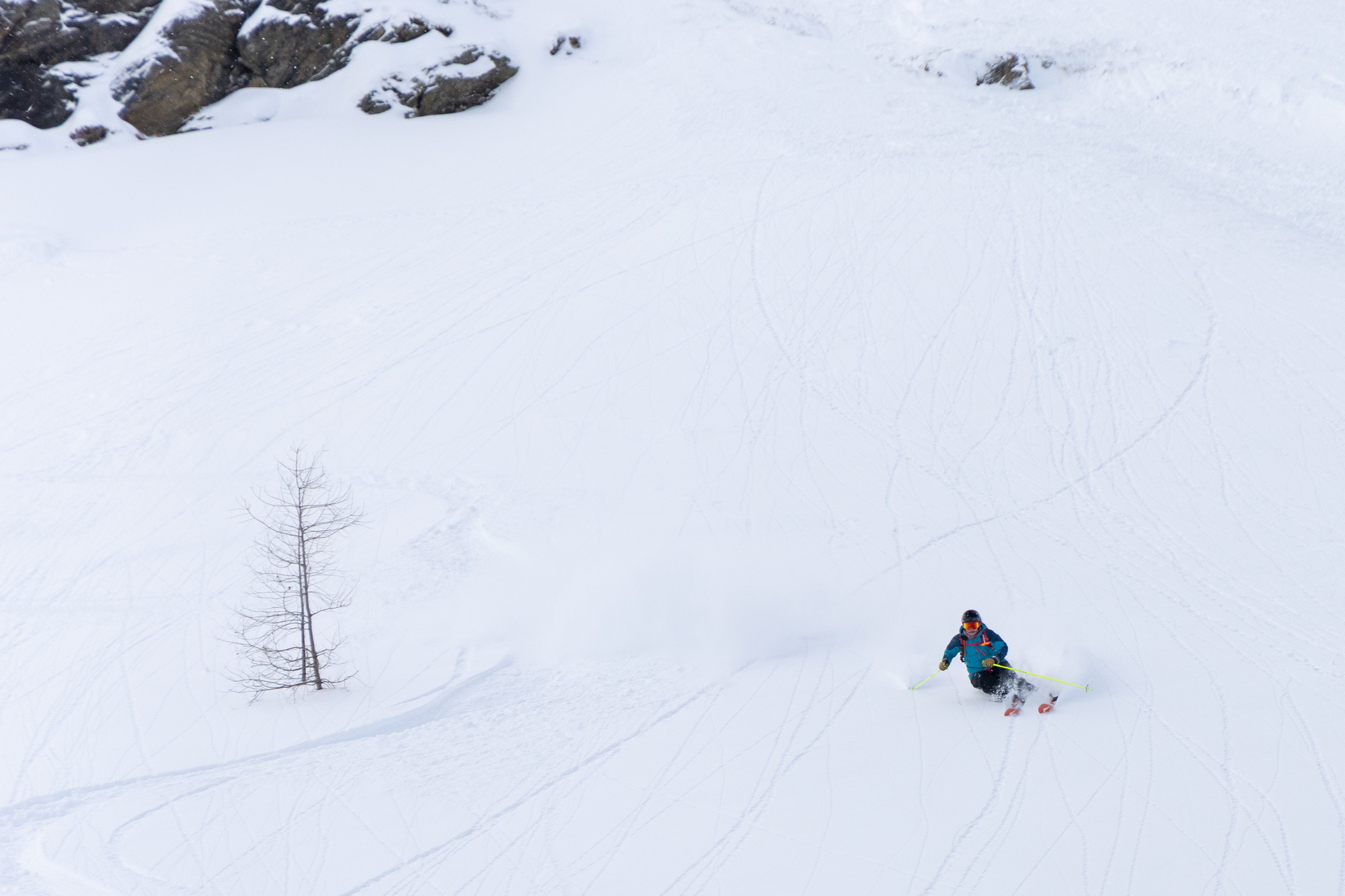 Překvapivě opět přichází mlha a my se tak rychle přesouváme na Rendl, kde podle webkamer svítí sluníčko. Z minulého dne jsme poučeni, a tak rovnou vylučujeme jihozápadně orientované svahy, kde vyčnívá spousta kamenů. Jako první jízdu volíme Gampberg a z něho severovýchodní svah. Z horní stanice Gampberg Direkte si musíme ještě vyšlapat kousek s lyžemi na ramenou, abychom přelezli přes hřebínek a mohli se vrhnout dolů k říčce Stockibach. Máme štěstí, před námi tu jely jen dva páry lyží. Prudší začátek se pomalu rovná a rozšiřuje a my malujeme naše první linky. Při dojezdu k potoku již narážíme na vyjetou dálnici od skialpinistů, a tak nemusíme ani píchnout hůlkou. Teď je před námi ještě poměrně svižný dojezd na cestu. Prudký, boulovatý svah plný porostu nás ale neudolá, a tak se po chvíli opět ocitáme na sjezdovce, kde nám hned padne do očí hospůdka Bifangalm.