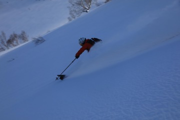 Na Rishiri poté strávíme poslední den, než se přesuneme do centrálního a severního Hokkaida. Takeho necháváme na jeho domovském ostrově a vydáváme se omrknout naše nejoblíbenější lajny v národním parku Daisetsuzan. Začínáme sjezdem hory Kurodake s nejvyšším převýšením na ostrově. Prudším žlebem se po 600 výškových metrech dostáváme do lesa, kde nás čeká dalších 800 výškových kvalitního březového pojezdu. Na vrchol se nám po druhé již nechce, brousíme tedy freeride od sjezdovky. V dalších dnech ještě lezeme na Asahidake, nejvyšší vrchol Hokkaida, kde se pří jízdě dolů můžete kochat vulkanickou párou unikající ze sopky. Následuje obligátní Furano, místo se zřejmě nejlepším freeridem dostupným z lanovky na celém ostrově.