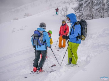 Ale abych jen nechválil. Když říkám, že Gesh je stejný jak Špind, tak to platí i s množstvím freeriderů. Je tu opravdu hodně silná freeridová komunita, která přesně ví kam jít. Naštěstí, tak jako ve Špindlu, tak i zde jsou tu hlavně lachtani nebo lyžaři bez šlapacího vázání. Pokud dobře znáte místní kopce, umíte a chcete si jen trochu odšlápnout, naleznete zde i týden po sněžení neprojeté sjezdy. Pokud nedokážete ve Špindlu týden po sněžení najít neprojetou lajnu, tak sem určitě nejezděte. Za den po sněžení budete mít vše na kaši.