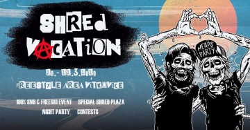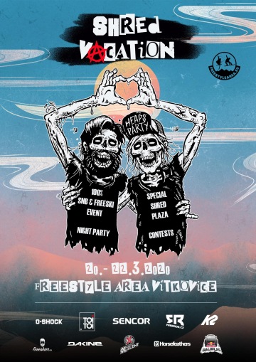 Nebudeme si nic nalhávat, nad letošním, čti čtvrtým, ročníkem naší vaší oblíbené zimní akce SHRED VACATION, která uzavírá zimní sezónu visel dlouho otazník. Pokud ale právě čtete tento text, vězte, že otazník se změnil na vichřičník a před ním datum 20.-22.3.2020!!! Letošní rádoby zima a navzdory tomu překvapivě akcemi nabitý březnový kalendář, nám vůbec nehrály do karet. A to ani nezmiňujeme, že nám rozkopali ve Vítkovicích celou plochu, na které se v minulosti v party stanu děly (ne)zapomenutelné věci. Sněhu na českých kopcích jsme letos také moc neviděli, takže už to vypadalo, že letošní ročník odpískáme. Ale to by nesměla být parta srdcařů Freestyle Area a Vítkovický K2 snowpark.