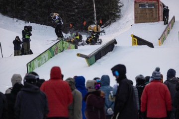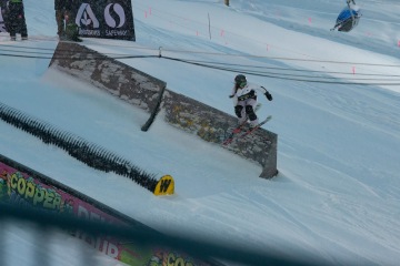 V obdobný soutěži na úplně némlich stejný bázi a formátu se sešel taky tucet vybraných freeskierů. Mezi jezdci se vyvalovalo celkem dost fresh jmen, které jinak na kontestech nevídáme, což vypadalo fajn. Do velkýho finále se podral railovej mág Tucker Fitzsimons a zejména dvojka Alex Hall a Colby Stevenson. Právě tohle hvězdné duo Dew Tour přebrala šampionátu v Gruzii, kde tak americký výběr přišel možná o svoje dva nejblyštivější diamanty. Na každej pád nakonec největší důvod k radosti měl Colby, který si dokázal dojibovat pro zlatý triumf. Stříbro tentokrát padlo do klínu Tuckerovi a A-Halla zůstal napospas bronzu.