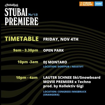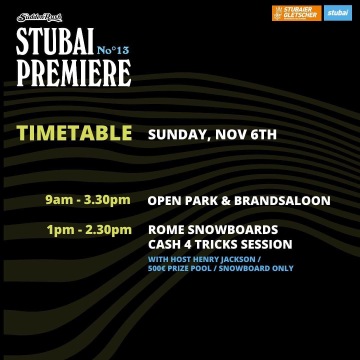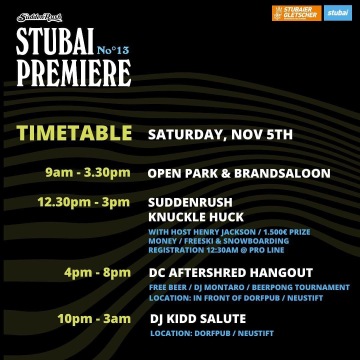 Park a překážky ale není jediný rozptýlení, který během tří dnů posune laťku naší nálady. V parku nás čeká několik vypečených eventů jako třeba SuddenRush Kunckle Huck, DC Aftershred Hangout či Rome Snowboards Cash 4 Trick Session. Pokud vaše výbava a nádobíčko vykazuje známky opotřebení jako zrezlá Felda z devadesátý pátýho, tak rovnou můžete napochodovat do Brandsaloonu. Tady bude svoje novinky vystavovat a zejména půjčovat více jak třicet renomovaných firem a výrobců. A co by to bylo za opening bez řádnýho odbourání mozkových buněk. Už teď se klepe populární Dorfpub v Neustiftu. Pokud tak seš na víkend zatím plonkovej, Stubai to může rázem změnit!