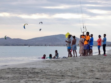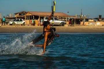 No a konečně jsme se vydaly na vodu. Ta je příjemně osvěžující, vítr je poryvový, ale tak, že se na to dá rychle zvyknout, k večeru je konstantní. Nikde jinde jsem nezažila tolik začátečníků, kteří by se tak rychle postavili na prkno a rozjeli se. A tolik pokročilých, kteří by se tak rychle zlepšovli. Místní děcka ovládají tento sport na světové úrovni, ne nadarmo pochází vítěz letošního světového poháru ve freestylu z Kolumbie.