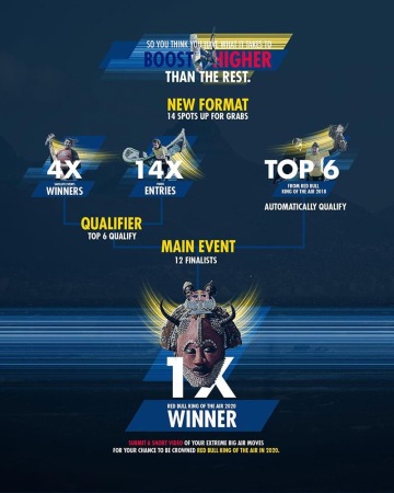 Kompletní startovní pole má 24 riderů. Z toho 18 kiterů bude mezi sebou supeřit v Round One a Two. V tomto 18ti členném poli jsou výherci z jiných Big Air compettion, 12 riderů kteří byli vybrání na základě videa, které mohli posílat na Red Bull, kde měli předvést své největší big airy. A další dvě divoké karty.