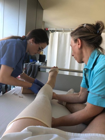 Po úvodním rentgenu, CT a dalších vyšetřeních, jsem se ani nenadál a už jsem před sálem. Po probuzení jsem se potkal opět s klukama a doktorem, co mě porcoval. Listují spoustama snímků, papírů a dokladů k pojistám a tak nějak k všemu. Pavel a Ivo mi s doktorem vysvětlují a tlumočí můj stav a všechna zranění. Dva naprasklé obratle, ale nic, co by se muselo šroubovat, pak plynule přecházíme k noze. Je již v běžné poloze, ale na stupnici bolesti 1-5 je to jednoznačná pětka. Převoz nemožný, operace nutná.
