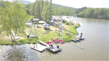 Sportovní nabídka sahá mnohem dál než jenom na wakeboard nebo wakeskate. Zahrát si tam můžeš beach volejbal, ping-pong nebo minigolf. Míče a vybavení si můžeš půjčit v areálu, ale pokud je na hřišti místo, tak není problém si zahrát zdarma. Na půjčení je i paddleboard.