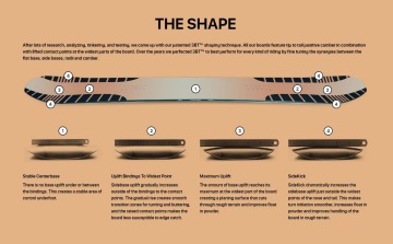 1. Stabilní střed prkna – to znamená, že středová část mezi vázáním je postavena na klasickém camber prohnutí, což zaručuje maximální stabilitu pod nohama, dodání popu, když je ho potřeba, maximální rychlost a snadné přenášení váhy z hrany na hranu.Tato část v podstate kontroluje snowboard při jízdě.