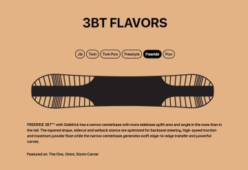 Dušan: Ak by išlo o príležitostného jazdca a nie je na svahu ešte, ako ryba vo vode, odporúčal by som FunKink alebo Whatever. Na nich si užiješ skvelý oblúk na zjazdovke či v prašane, ale môžeš poshrediť aj v parku. Je tam užší 3BT a to zjednoduší ovládanie dosky aj začiatočníkom. 3BT je skvelá vec. Niekomu stačí jedna jazda, niekomu zas celý deň, aby jej prišiel na chuť, ale potom 3BT dosku už nechce vymeniť za svoju starú.