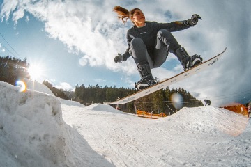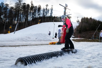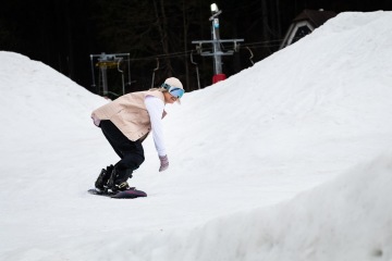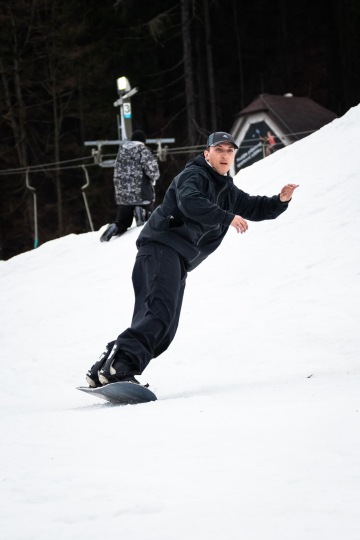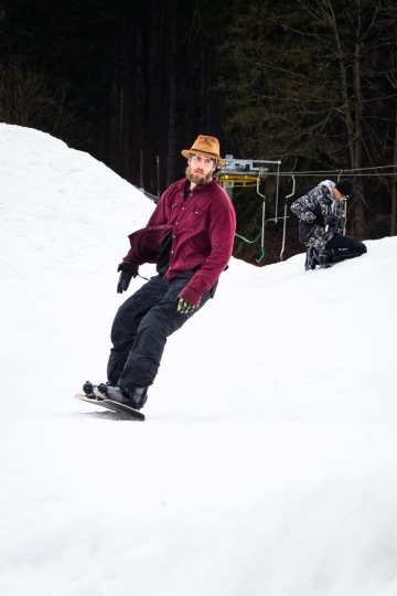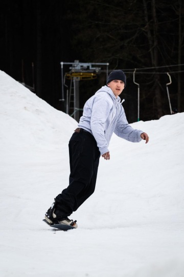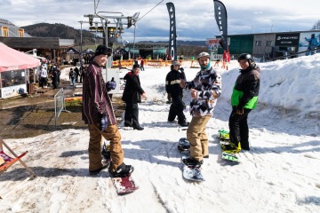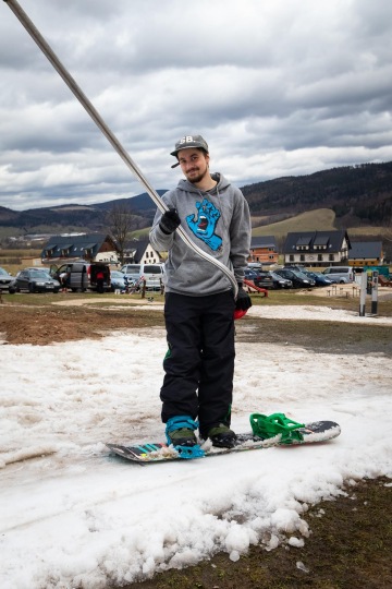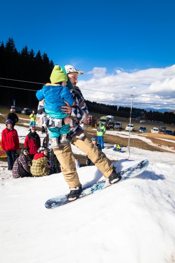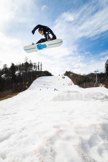 Každopádně počasí bylo fakt libové, slunko svítilo, kdo chtěl tak shredil v tričku a slash byl takový, že byls rád, že vůbec jedeš. Zkrátka rychlost celkem chyběla, ale to nikomu zas tak nevadilo. Kdokoliv totiž mohl využít příležitosti půjčit si nějaké testovací prkno od Zezuláků nebo z Burton stánku. Já toho rozhodně využil a Arbor deska od Zezuly skvěle posloužila a přišla vhod.