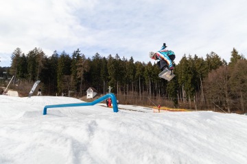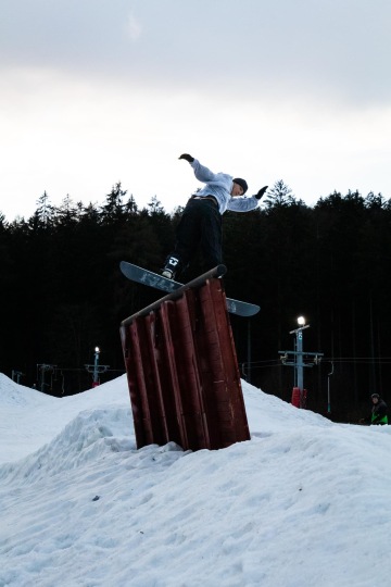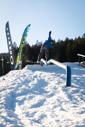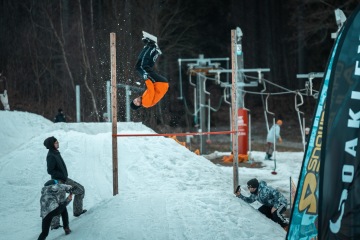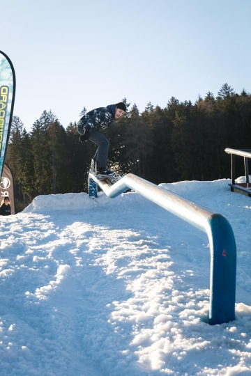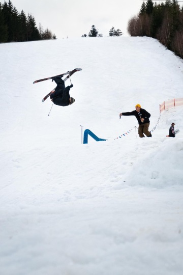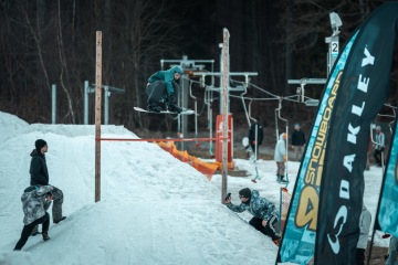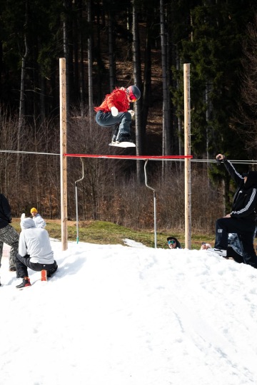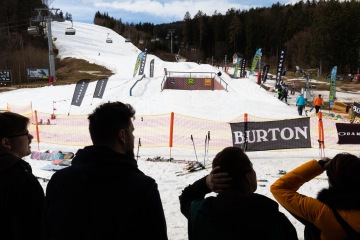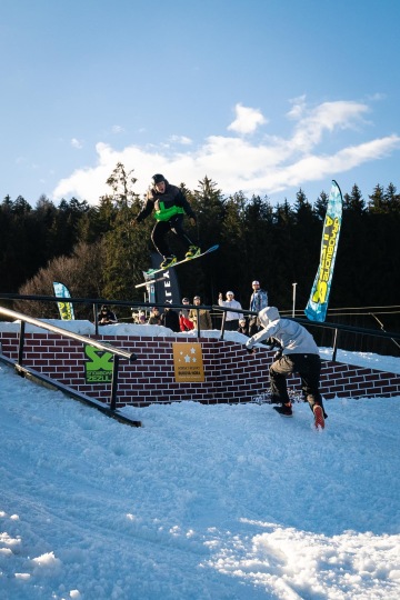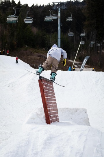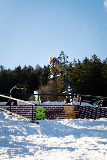 Bukovka disponuje velmi dobrou vybaveností co se týče zasněžování a i když tomu letos zima moc nepomáhala, tak na kopci to bylo rozhodně vidět. Sněhu bylo dostatek a na místě stály hromady, které lokální shapers, bagristi a rolbaři proměnili v rozlehlé a zábavné hřiště plné překážek. Například corner, který se dal létat přes a dali se na něm provádět veletoče všech úrovní. Dále hned na začátku čekala pro ridery velmi oblíbená hokejka, která svoje “lko” měla tak nakoplé, že se na tom dalo lítat až do vesmíru a jezdci mohli předvádět např. rotace o 360 s prstem v nosu. Dále hned za hokejkou čekal wallride, který se dal jezdit i jako vysoký rail. Hned vedle menší skok a na závěr hlavní a celé akce ikonická platforma v podobě balkonu, který se dal jezdit ze všech stran, či různě transferovat. Ještě nesmím zapomenout na doubleking, který byl též u jezdců velmi oblíbený. To by bylo vše k set-upu, teď mrkneme jak to vlastně probíhalo na místě.