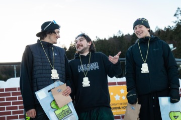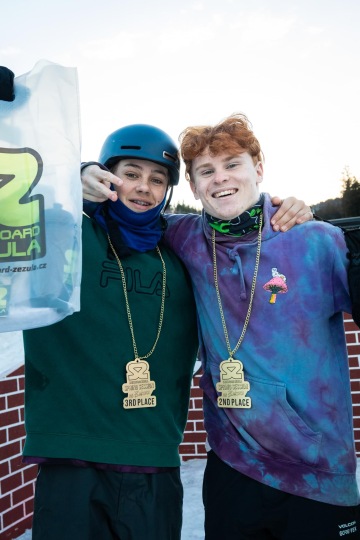 Dále se odjel i contest, který si samotní rideři odsouhlasili, že se pojede v celém parku a tak ten, kdo předvedl perfektní jízdu a dojel až k balkonu, mohl se radovat z prvních příček. Ceny si odnesli např. Darek Bergman za highjump i první místo v contestu, dále byl druhej Ondra Porket, třetí flek bral Láďa Hrstka. Z dětí nejlíp diktoval Maty Krejčí, Maty Skandera a Max Lebedev. Z holek Terka Bauerová, Aďa Krátošková, Terka Lisková. A ve freeski kategorii nejlíp zabili Kroča, Novotný a Ferbr. Všem velká čest a i těm, co se na stupně vítězů nedostali. Respekt všem!