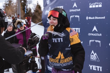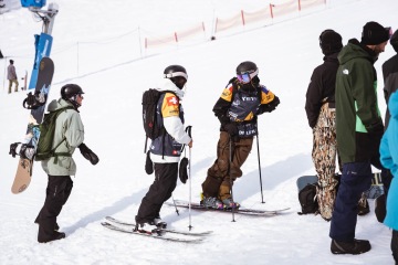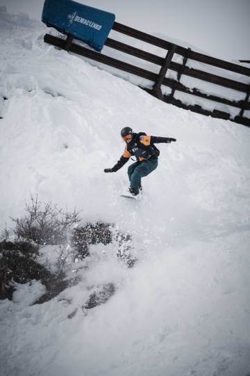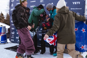 Jednou z nich byla i Mia Jones, jestli je vám to jméno nějaké podezřelé, tak to chápete správně. Dceruška snowboardové legendy Jeremyho Jonese jde v rodinných šlépějích a za doprovodu táty si v Kapplu odnesla skvělý třetí flek! Holky celkově jezdily docela slušně, ale šlo vidět, že počasí prášení úplně nepřálo a místo prachu jim od prken lítal mokrý sníh. Druhé místo letělo na Nový Zélend do rukou Brooke Hansen a první byla američanka Teagan Rilee Turner, která jako jediná udělala ve své jízdě trik v podobě FS 180.