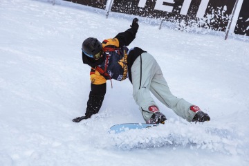 Kluci to na prkně rozjeli do freestylu trošku víc a snažili se do jízdy zakomponovat nějaké ty rotace i na větších kickerech, ale šlo vidět, že podmínky nehrály snowboardingu úplně do karet na těžkém, mokrém sněhu měla většina riderů problémy. Nejlépe nakonec svojí jízdu odjel francouzský závodník Kea Chretien, druhé místo obsadil Finn Eisenman z USA a třetí flek bral Němec Leonardo Schweizer.
