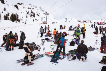Nakonec organizátoři vybrali na závod středu, kdy počasí vypadalo nejslibněji a místní rosničky jim dokonce slibovaly sluníčko, čemuž se naše spojky na místě dost smály, protože tomu nevěřil asi nikdo. Ovšem ranní rozhrnutí záclon znamenalo "good morning" ve velkém stylu a páni meteorologové zase tak daleko od pravdy nebyli. Rychle jsme vyrazili na kopec, kde nás i všechny organizátory překvapilo další překvapení. Lanovky směrem na kopec, kde se závod konal byly vypnuté kvůli větru, a proto jsme museli všichni pěkně po svých došlapat až na cílovou rovinku. Zde už si partička všech riderů společně s diváky stavěla své ledové trůny, ze kterých poté budou sledovat závod. Postupně začaly přijíždět rolby a odvážely ridery na startovní čáru, odkud se jako první měly spustit juniorské snowboardistky.