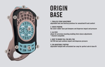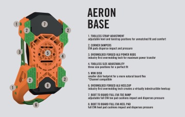 „Origin je náš původní baseplate, který je pohodlný a spolehlivý a my o něm víme, že je to prostě skvělý koncept. Aeron je pak náš nejnovější hi-tech typ baseplatu. U něj oceníš především jeho lehkost. Zkombinoval jsem u něj nylonový materiál s hliníkem a v tomto spojení tak vázání dostává nejen potřebný flex, ale i důležitou pevnost. Padding je pak u něj dvoudílný a umožňuje jezdci jednoduché nastavení a skvělé tlumení. Snažil jsem se taky vytvořit co nejužší profil baseplatu a polstrování paddingu, aby bylo zachované to nejlepší cítění desky pod nohama.“
