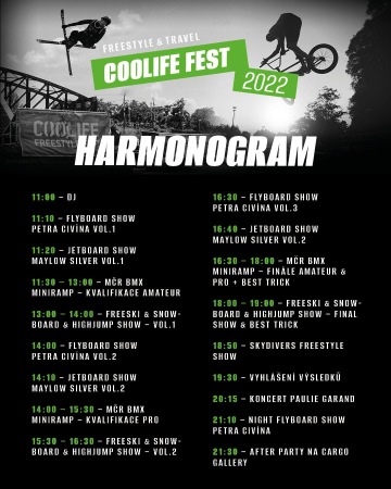 Coolife Fest 2022 otevře svoje braný v 11:00 velitelského času. Vstupný je tentokrát grátis, takže můžete veškerý chechátky směle nechat třeba na baru. Už od poledních hodin nás začnou bavit a rozptylovat nejrůznější sportovní exhibice. Těšit se můžete na flyboard show Petra Civína, jetboardy zas rozpálí partička okolo Maylowa Silvera. A pak už přijde na řadu freeskiing a snowboarding! Přímo na hladině Vltavy totiž stejně jako minule vyroste skok, kde si naše elita bude užívat jedinečnou atmosféru skákání v našem hlavním městě. Dorazí jak současná mladá krev tak zkušení matadoři, kteří skoro pamatují, když za pomy a kotvy platili v Kčs. Bavit se každopádně budeme všichni!