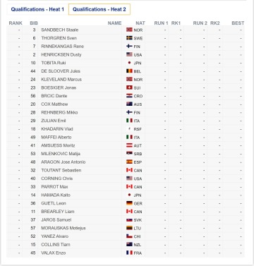 Přesné časy závodů se můžou kvůli počasí a dalším faktorům měnit a stejně tomu bylo i dnes, kdy byla kvalda žen ve slopestylu o hodinu posunuta, protože přes noc napadala hromada sněhu. Momentálně už je, ale kvalda žen v plném proudu a vy můžete sledovat živé skórování na odkazech níže.