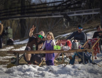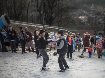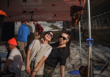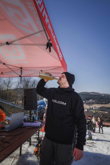 Během celého dne krásné azůro, 20 stupňů, že i Lucas Magoon volal, starki na Bear Mountain takové počásko nemáme. Hrál nám celou dobu DJ Hanzek tak svižně, jak do něj padaly čepované pivka a panáky, holky kroutili pánvemi, spokojenost. Rozdala se tombola, ve které bylo díky sponzorům cca. 50 cen a myslím, že spokojenost u všech ( hlavní cena snowboard deska Salomon nebo třeba pobyt na krásné horské chatě Gírová ). Super východní parta, která se umí bavit a hlavně máknout, jelikož celý DIY snowpark se dělal na tuhle akci extra, aby všichni příchozí byli spokojeni a snad byli. Přátelská až rodinná atmosféra se přesunula i na večerní áfterku do místní, lokály nazývané hospůdky "LA", kde už si to necháme asi pro sebe co se dělo, kdyžtak se zeptejte Vaška, jestli něco pamatuje.