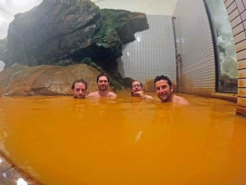 Ježdění v Japonsku zkrátka nemá chybu. Sníh lítá všude, je zima, fousy plný rampouchů. Po pár hodinách je toho ale až moc a jeden by se rád ohřál. Ve vulkanicky velmi aktivním kraji naštěstí není problém narazit na onsen. Onsen původně znamená horký pramen, jakých je na Hokkaidu mnoho. Dnes je to výraz pro veřejné koupele, možná spíš lázně, které najdete v každém městě i vesnici, často i daleko od civilizace. Bývá to větší budova s malou recepcí, miniaturním obchůdkem s dobrůtkami a suvenýry. Za vstup se platí něco mezi 500-1200Jeny, to je něco kolem naší stovky. Zázemí je podobné tomu našemu – projdete skrz oddělené šatny a pak přijdete do místnosti s bazénky s různě teplou vodou, ty horké bývají i venkovní. Často se v areálu nachází i sauna. Pro Japonce jsou onseny významnou součástí kultury a tráví v nich poměrně dost času.
