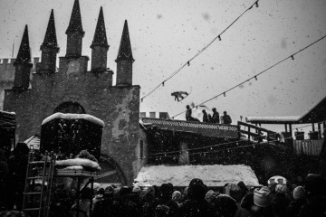 Akci zahájil velkolepý příchod Ethana a bratrů Helgasonových v dobových pláštích a na koních. Po úvodním přivítání a poděkování z Ethanovy strany se rozpoutalo to, pro co si diváci přišli. Nevíme jak vy, ale my jsme byli svědky snowboardingu na hradních zdech a střechách poprvě a musíme přiznat, že to bylo víc jak epické!