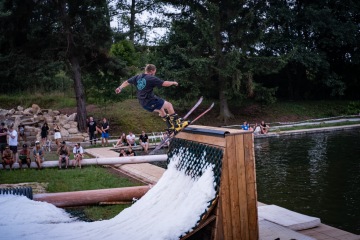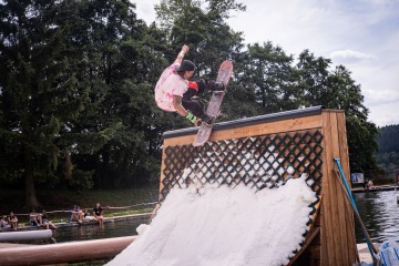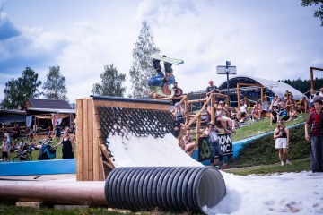 Najdeš tady kulturní dům, bar, víceúčelové hřiště, chatky na přespání, velkou stage, čisté koupaliště s ochlazující vodou a s písčitou pláží, minirampu, pumptrack, trampolínu a jibbovací set-up s kartáčema. No a na tomhle místě se 19. až 21.7. konal již 13. ročník, dnes už legendární akce BCB Summer Jibbing!