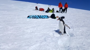 K tomu splitboardingu či snowboardingu – možnosti tu jsou obrovské, obohacené pocitem, že před vámi tu nikdo nikdy nejel. Trochu problém je najít místa (mimo několik známých kotvišť) kde se dá přistát, projít skrz smrdící a krákající tisíce tučňáků a prostoupit hranou ledovce. Nad ní už jsou nedozírné ledovcové pláně i vrcholy četných kopců a je z čeho vybírat.