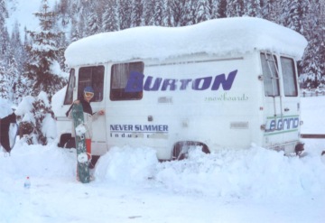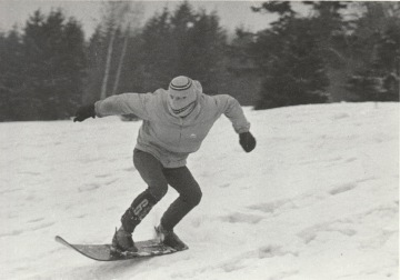 Ke skejtu jsem se pak už nevrátil, ale plynule jsem přešel k dalšímu boardovému sportu – windsurfingu, u kterého jsem vydržel dalších 20 let. Už tou dobou, kolem roku 1980, se v Alpách začali objevovat první jezdci na snowboardech, což mi samozřejmě neuniklo. Pořídit si ale originální snowboard „ze Západu“ bylo nemožné a finančně nereálné; zbývala domácí samovýroba, jakou jsme znali z výroby skejtů. První prkno jsem si udělal z velké plexisklové desky. Ruční pilkou jsem z ní vyřízl tvar, co jsem viděl v nějakém časopisu, nad plynem ohnul špičku a patku, pod boty nalepil písek, ke špičce uvázal provaz s rukojetí a vydal se jezdit. Tehdejší prkna totiž vypadala opravdu úplně jinak než ta dnešní a nebyla delší než metr. A kam? Samozřejmě na Neklid, kde jsme měli uprostřed sjezdovky chatu. Jako lyžařská rodina jsme měli ke sněhu blízko. Další prkno vzniklo z překližky, u které jsem opět ohnul špičku. Tentokrát jsem si už přišrouboval kusy pásů, do kterých jsem zasunul nohy, jako primitivní vázání. Tvarově i délkově už bylo podobné těm dnešním, ale ovladatelnost byla stále špatná a jezdit se s tím dalo v podstatě jen v prašanu, takže pořádně si zajezdit se mi povedlo jen párkrát za zimu. S tímhle prknem se mi přesto na Neklidu podařil asi historicky první skok na snowboardu. Každopádně nebylo to ono, já snowboardu nějak moc nepropadl a další pokusy o výrobu lepších prken ani nezkoušel.