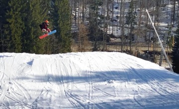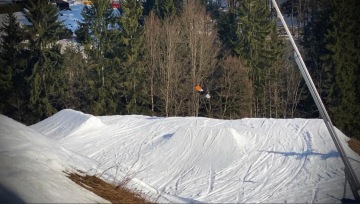 Druhý den byl opět věnován shredu do roztrhání těla. V parku probíhal - nazval bych to - bazén jam. Byla celkem sranda sledovat malý snowboarďáky, jak si tam s prknem plavou. Škodolibá, ale sranda.