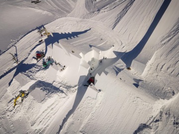 Momentálně už se na místě maká na plné obrátky, aby celá trať byla v čas připravena a my online diváci si mohli užívat snowboarding v tom nejkreativnějším a nejinovatinějším provedení!