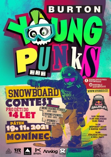 Již tento pátek 19.11. 2021 proběhne první ze série závodů Burton Young Punks 2021! Celá akce se odjede ve snowparku na Monínci a je určená pro všechny malé snowboardisty ve věku do 14let! Tak sbalte malého s prknem do boardbagu a vyrazte na první snowboardový závod letošní sezóny na našem území!